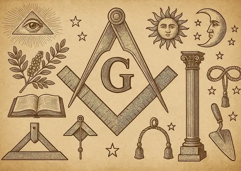 Los símbolos principales incluyen la escuadra, el compás y la letra G, cada uno con significados profundos.